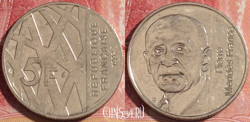 Франция 5 франков 1992 года, KM# 1006, 261-130