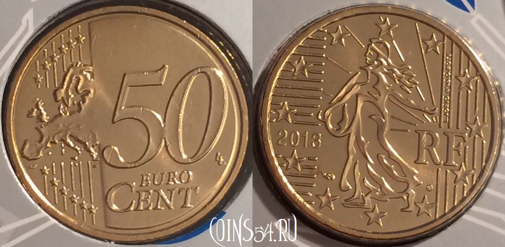 Франция 50 евроцентов 2013 года, KM# 1412, BU, 401n-120