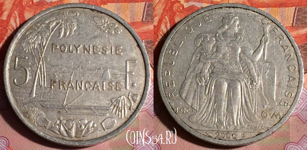Французская Полинезия 5 франков 2000 года, KM# 12, 206c-044