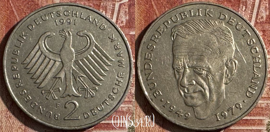 Германия 2 марки 1991 года F, KM# 149, 504s-093
