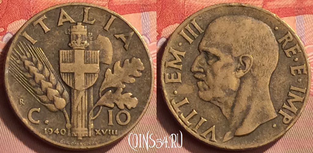 Италия 10 чентезимо 1940 года, KM# 74a, 425-129
