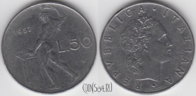 Монета Италия 50 лир 1960 года, KM 95.1, 121-137
