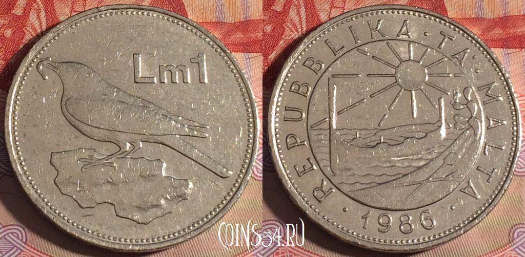 Мальта 1 лира 1986 года, KM# 82, 215a-088