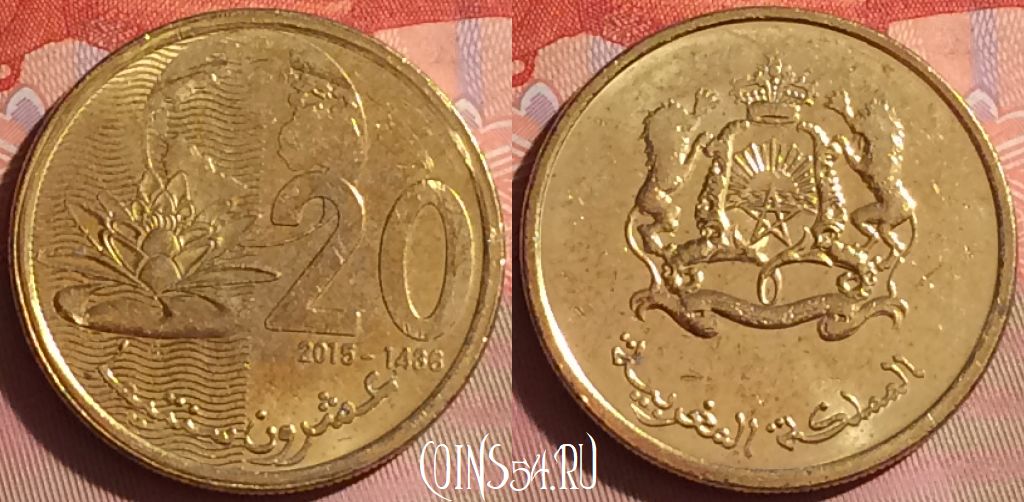 Марокко 20 сантимов 2015 года (1436), Y# 137, 340i-032