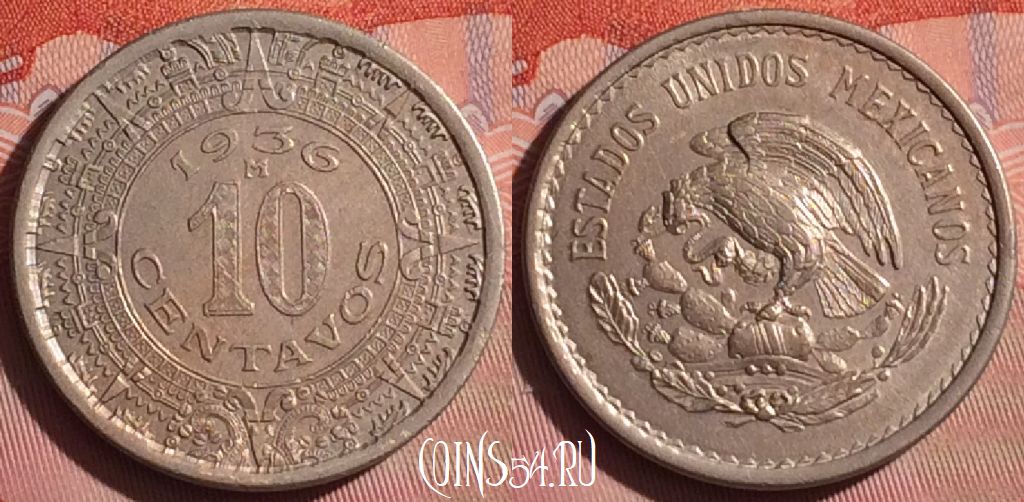 Мексика 10 сентаво 1936 года, KM# 432, 057i-195