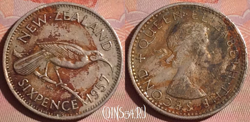 Новая Зеландия 6 пенсов 1957 года, KM# 26.2, 051i-174