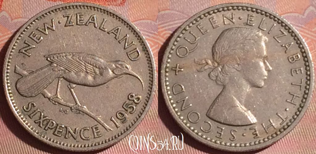 Новая Зеландия 6 пенсов 1958 года, KM# 26.2, 051i-159