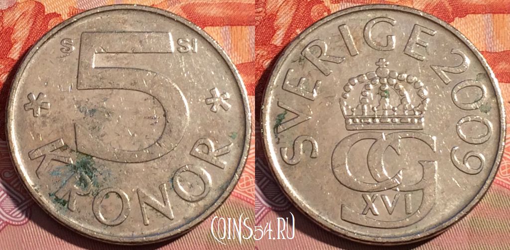 Швеция 5 крон 2009 года, KM# 853a, 084c-100