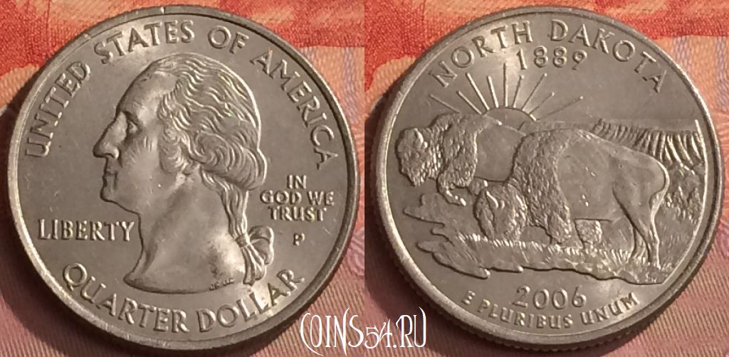 Реверс: 1889 2006 E PLURIBUS UNUM NORTH DAKOTA