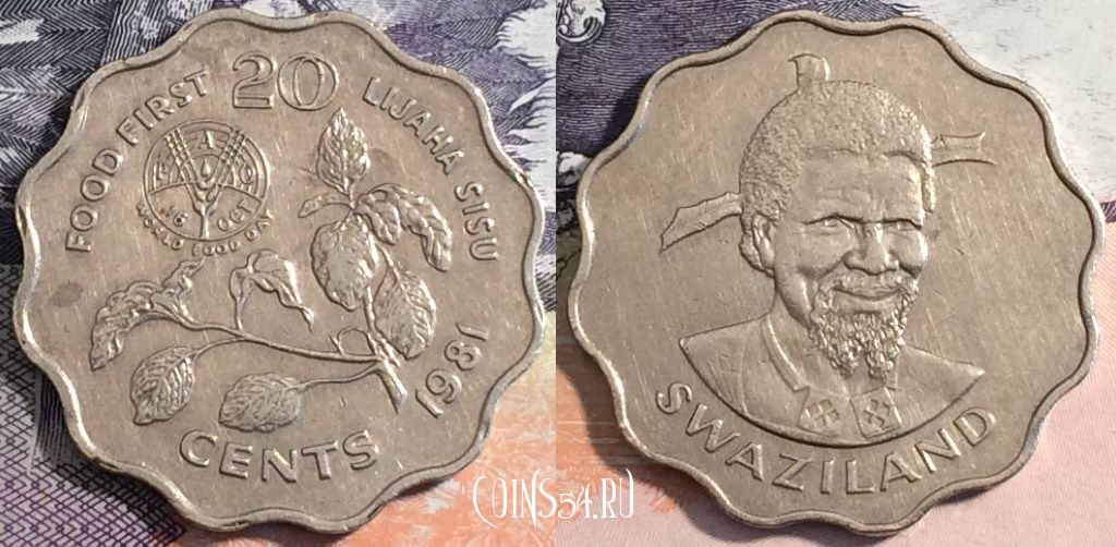 Монета Свазиленд 20 центов 1981 года, KM# 31, 165-118