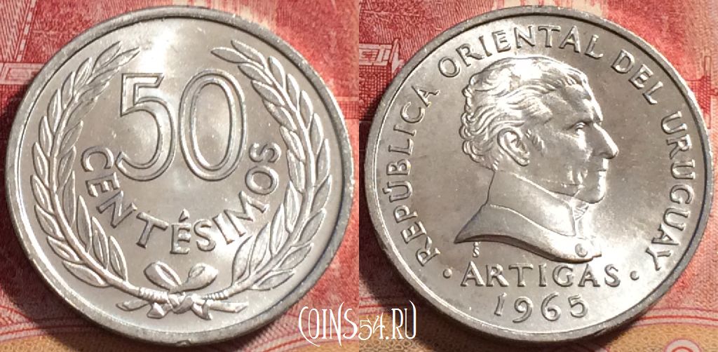 Уругвай 50 сентесимо 1965 года, KM# 45, 261-049