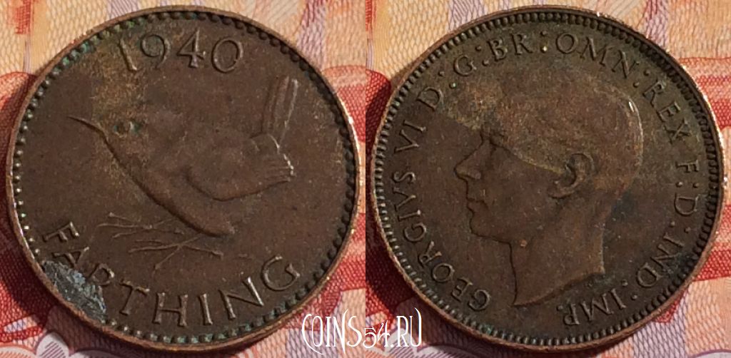 Великобритания 1 фартинг 1940 года, KM# 843, 085b-050