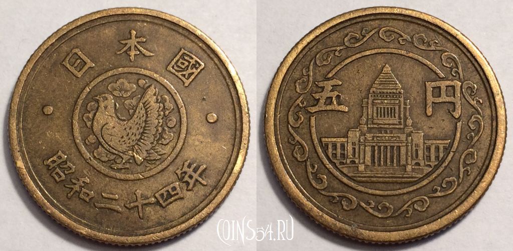 Монета Япония 5 йен 1949 года (昭和二十四年), Y# 71, 70-071a