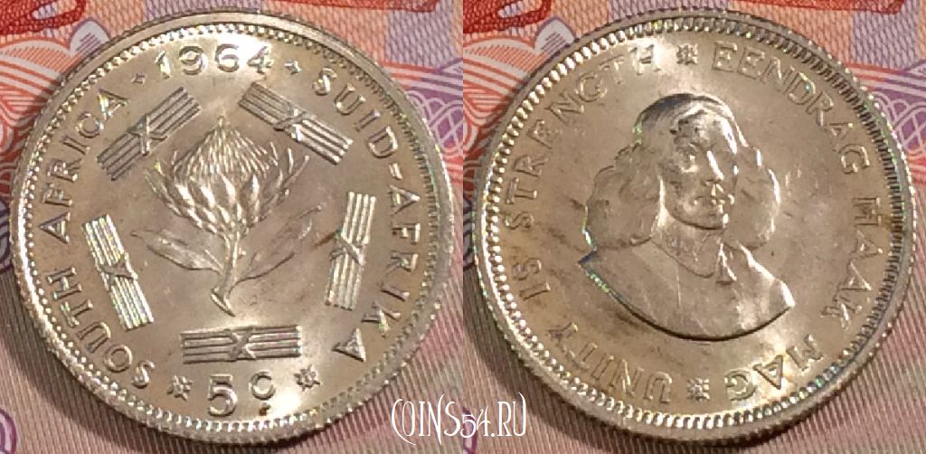 ЮАР 5 центов 1964 года, KM# 59, UNC, 279-036