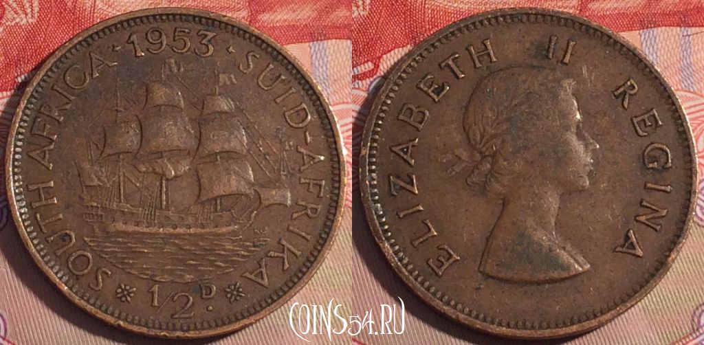 ЮАР 1/2 пенни 1953 года, KM# 45, 203a-045