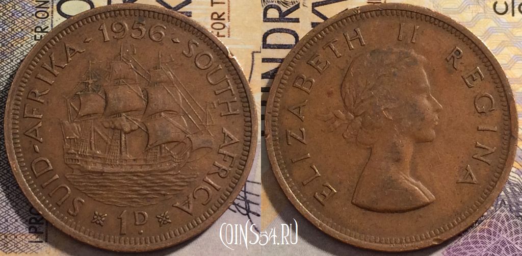 ЮАР (Южная Африка) 1 пенни 1956 года, KM# 46, 163-044