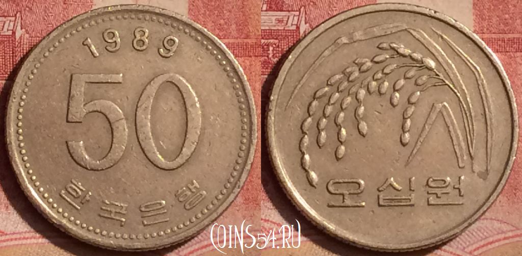 Южная Корея 50 вон 1989 года, KM# 34, 395-101
