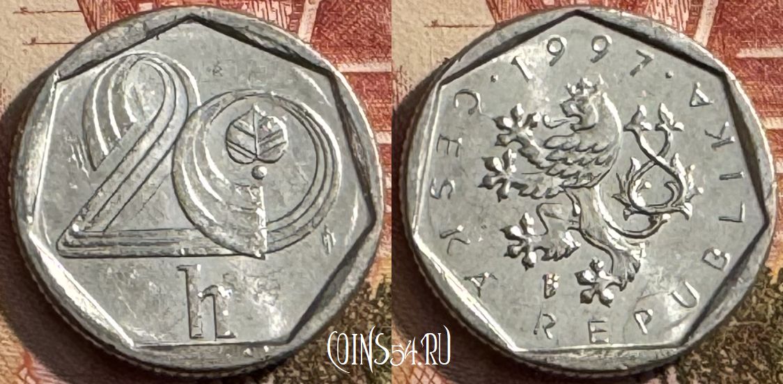 Чехия 20 геллеров 1997 года, KM# 2.1, 135t-066