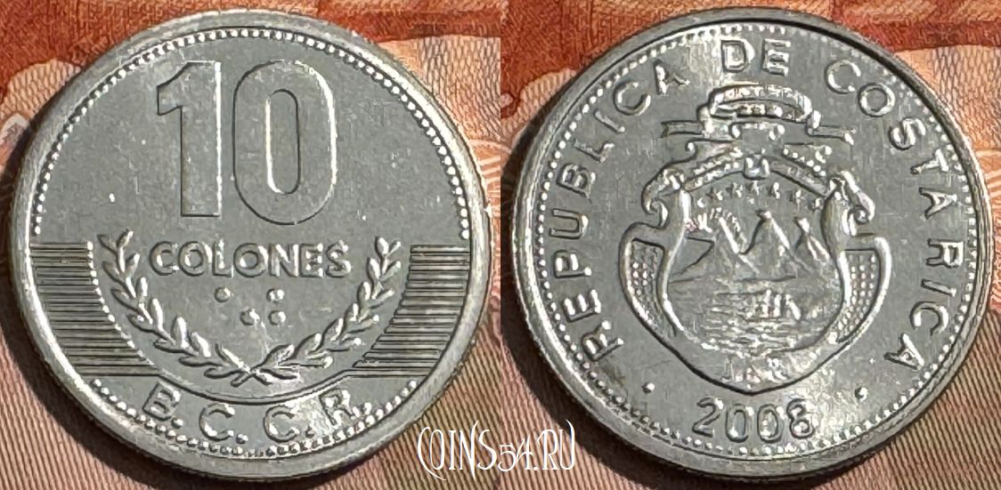 Коста-Рика 10 колонов 2008 года, KM# 228b, 509s-056