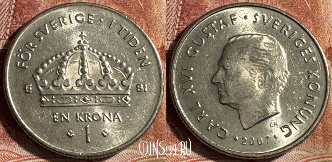 Швеция 1 крона 2007 года, KM# 894, 453s-085