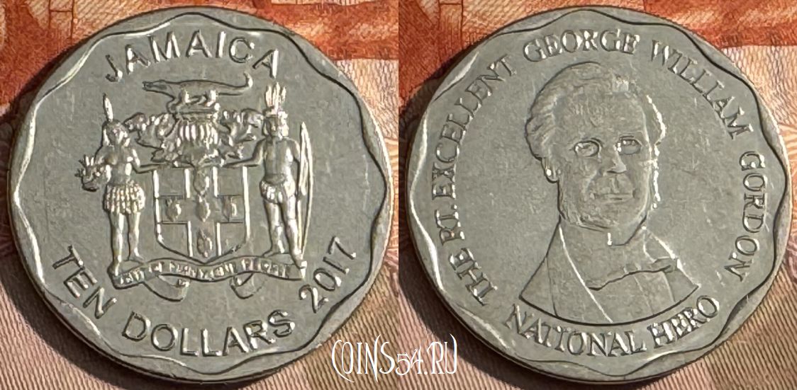 Ямайка 10 долларов 2017 года, KM# 190, 226t-004