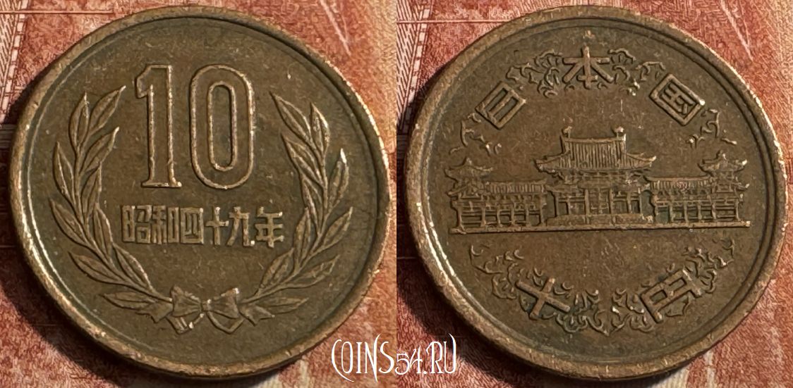 Япония 10 йен 1974 года, Y# 73a, 490s-143
