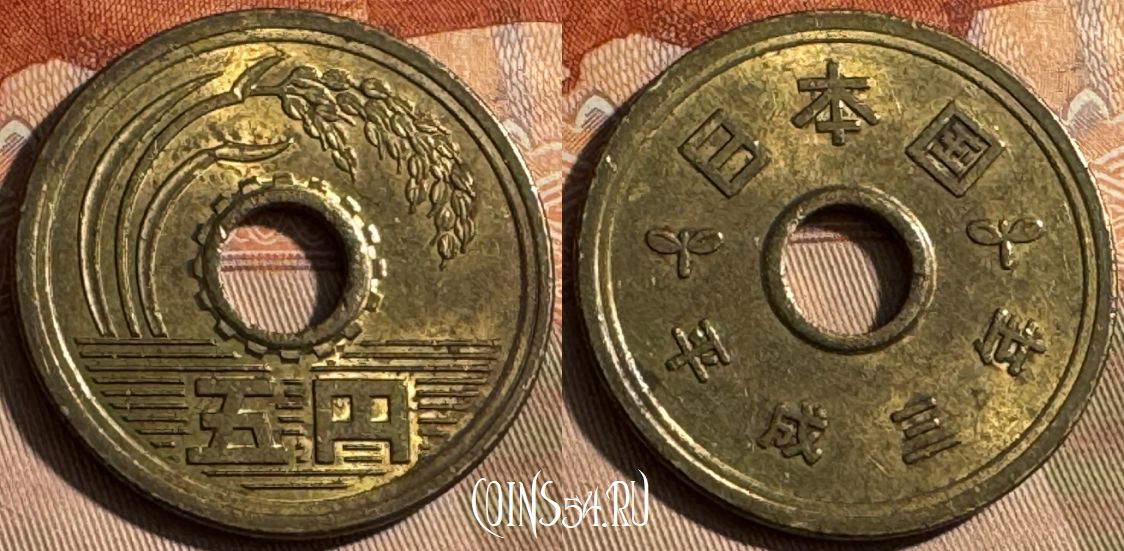 Япония 5 йен 1991 года, Y# 96, 485s-033