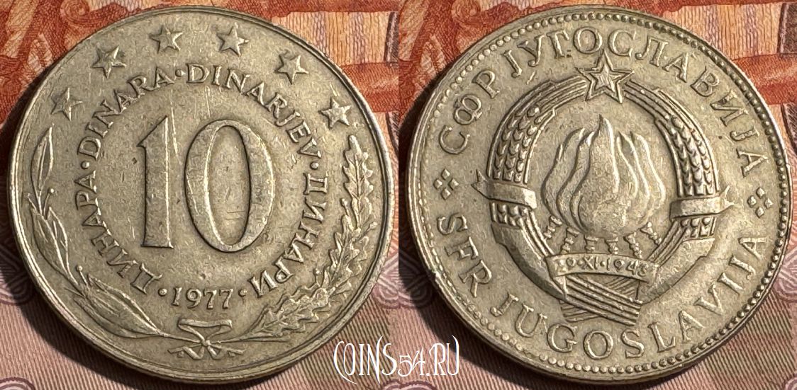 Югославия 10 динаров 1977 года, KM# 62, 486s-033